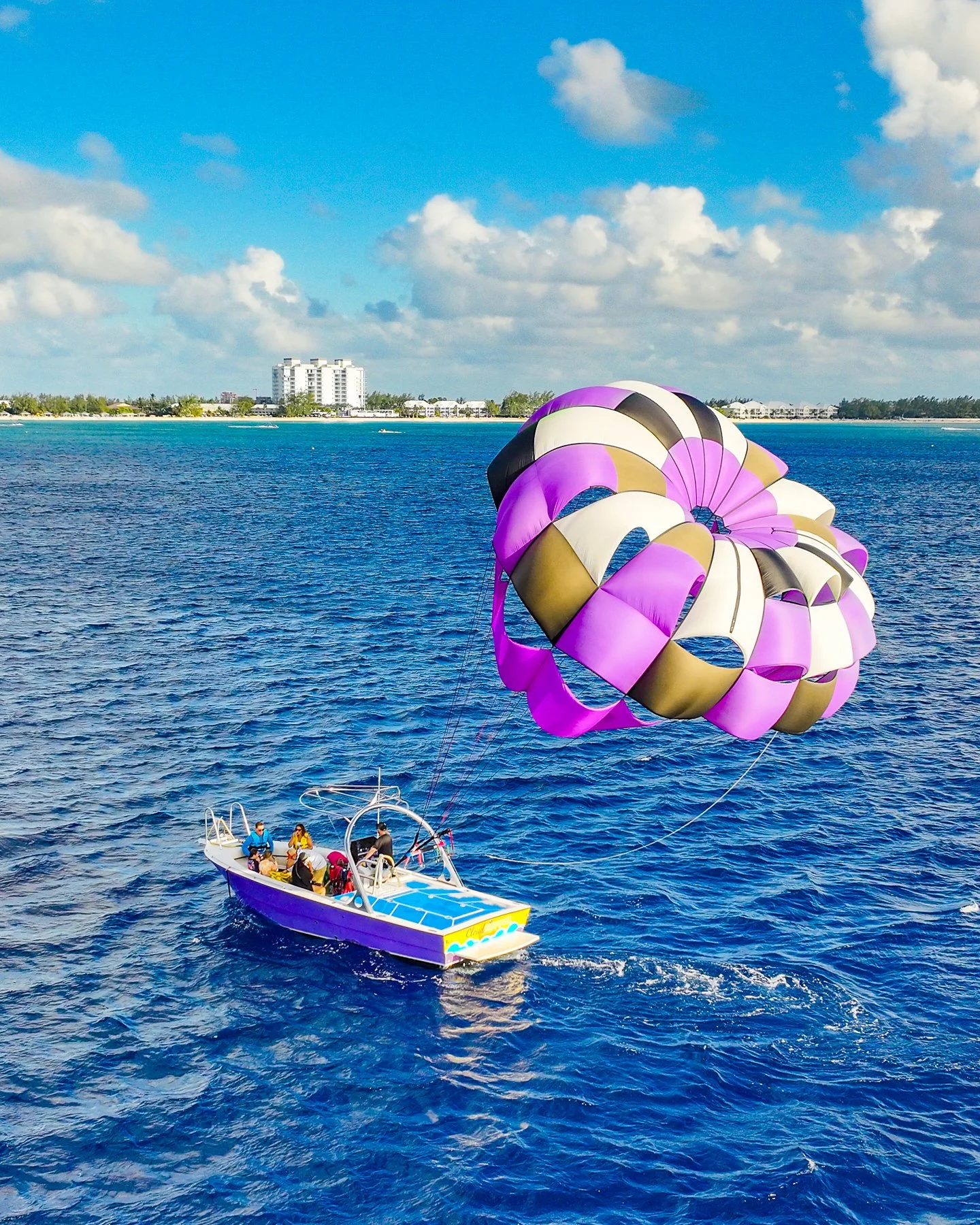 Smooth, Scenic Parasailing in the Heart of Grand Cayman. Fly High Above the World Famous Seven Mile Beach.